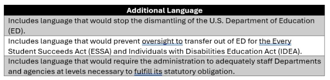 The chair and ranking member of the Senate Appropriations Committee, Sen. Susan Collins (R-ME) and Sen. Patty Murray (D-WA), respectively, have promoted their attempts to insert guardrails into the bills. But most of these are notification requirements similar to those already in effect – and being regularly violated by the Trump Administration. For example, the fiscal year 2024 LHHS bill - whose provisions are still operative throughout FY25 as a result of the year-long continuing resolution - contained requirements for Congressional consultation and notification before an agency “reorganizes or renames offices” or “eliminates a program, project, or activity”; the Trump Administration has regularly violated these requirements.