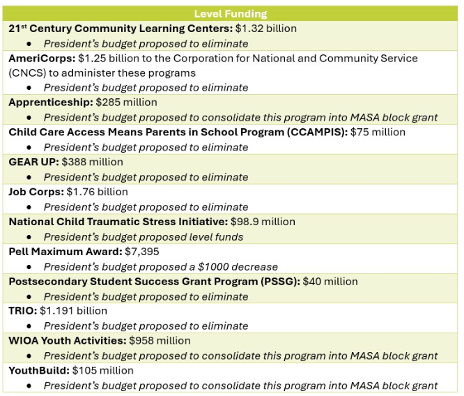 However, the Senate bill ignores the elephant in the room: Even if Congress passes funding at these levels, there’s no guarantee that the Trump Administration will spend money as Congress directs. The Administration continues to illegally withhold Congressionally appropriated AmeriCorps funding, and attempted to shut down most Job Corps centers.